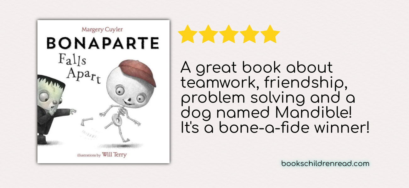 Bonaparte Falls ApartAuthor: Margery Cuyler Illustrator: Will TerryHardcover, 40 Page Picture Book, Ages 3-6 Sporting a red baseball cap Bonaparte, a boy skeleton, loses…